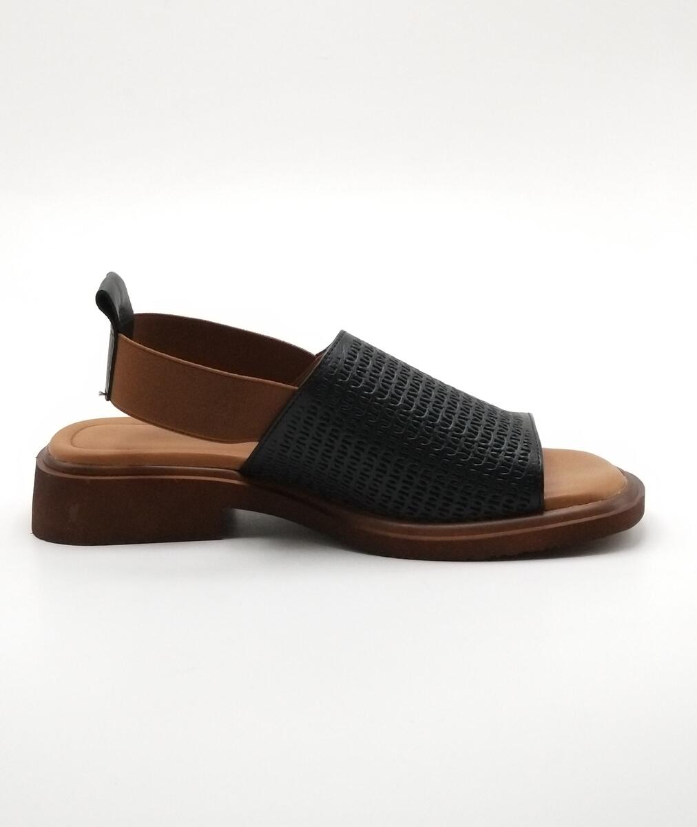 Y-47104 LAZERLİ DERİ SİYAH DERİ SANDALET