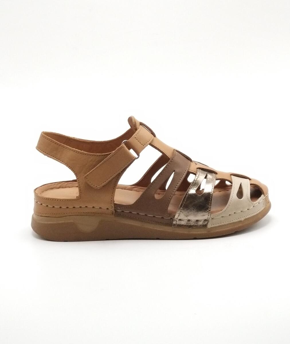 Y-M 025 DERİ TABA CEVİZ DERİ ALTIN BEJ DERİ SANDAL