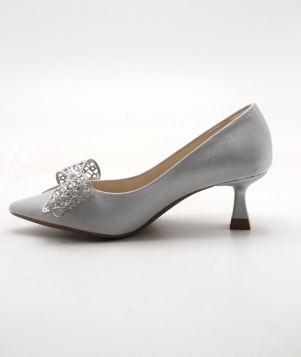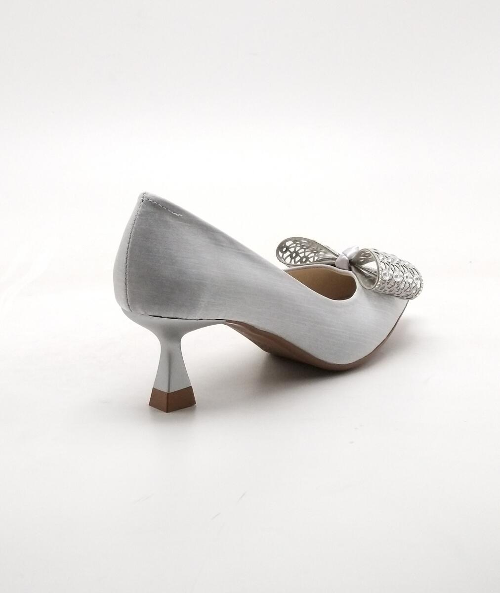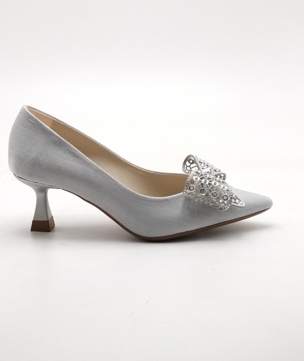 Y-543 ÇİZGİLİ SATEN GÜMÜŞ AYAKKABI