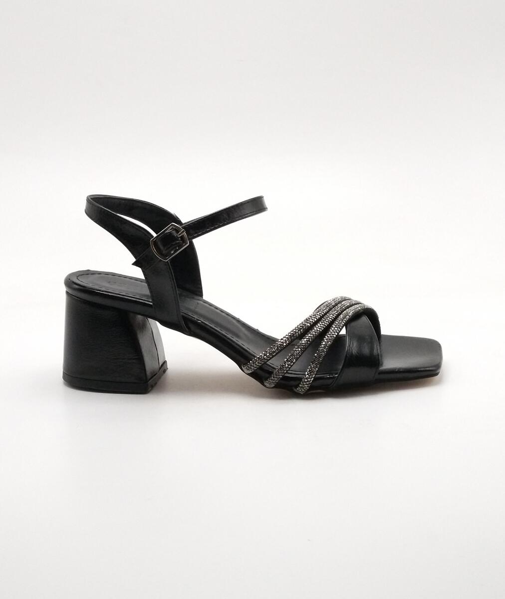 Y-430 METALİK KIRIŞIK SİYAH SANDALET